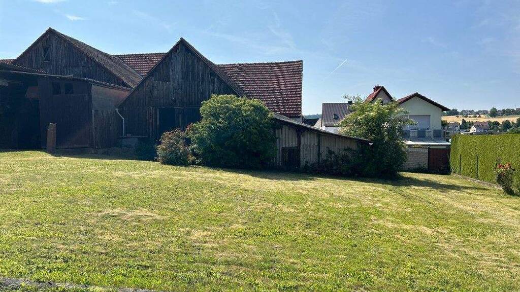 Das insgesamt ca. 949 m² große Grundstück besteht aus einem Bauplatz und einem Einfamilienhaus mit Garage und einem Nebengebäude/Scheune. Die Gebäude (Einfamilienhaus mit Scheune und Garage) können sowohl zurück gebaut als auch renoviert werden.