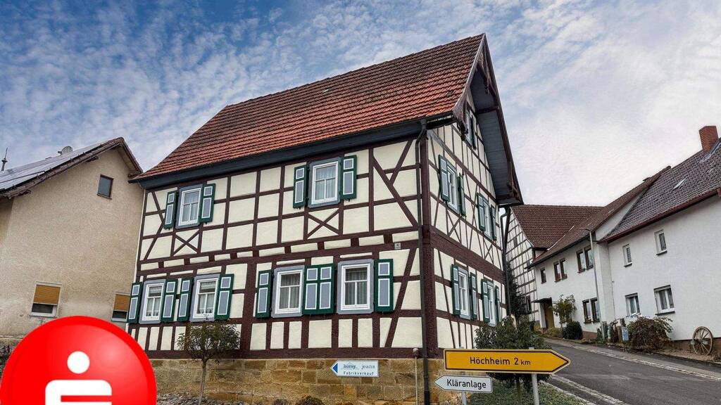 Die Immobilie befindet sich in Gollmuthhausen, einem idyllisch gelegenen Ortsteil der Gemeinde Höchheim im unterfränkischen Landkreis Rhön-Grabfeld. Der Ort ist geprägt von einer ruhigen, ländlichen Struktur und einer reizvollen Umgebung mit weiten Landschaften, die ein hohes Maß an Wohn- und Lebensqualität bietet. Trotz der naturnahen Lage ist Gollmuthhausen gut in das regionale Verkehrsnetz eingebunden. Über die umliegenden Kreis- und Staatsstraßen besteht eine schnelle Anbindung an die Bundesstraße B279, über die die Städte Bad Königshofen und Bad Neustadt an der Saale bequem erreichbar sind. Die Autobahn A71 mit Anschluss in Richtung Schweinfurt und Erfurt liegt in einer Entfernung von etwa 15 bis 20 Fahrminuten und gewährleistet eine gute überregionale Erreichbarkeit. Der öffentliche Personennahverkehr verbindet Gollmuthhausen mit den umliegenden Orten, während sich der nächstgelegene Bahnhof in Bad Neustadt an der Saale befindet. Die infrastrukturelle Versorgung ist durch die nahegelegenen Gemeinden umfassend gesichert. Einkaufsmöglichkeiten für den täglichen Bedarf, Ärzte, Apotheken, Kindergärten, Schulen sowie weiterführende Bildungs- und Freizeitangebote befinden sich in Höchheim, Bad Königshofen und Bad Neustadt an der Saale. Insgesamt verbindet die Lage von Gollmuthhausen ruhiges, naturnahes Wohnen mit einer funktionalen Anbindung und einer gut erreichbaren, soliden Infrastruktur, was den Standort besonders attraktiv für Familien, Berufspendler und Ruhesuchende macht.