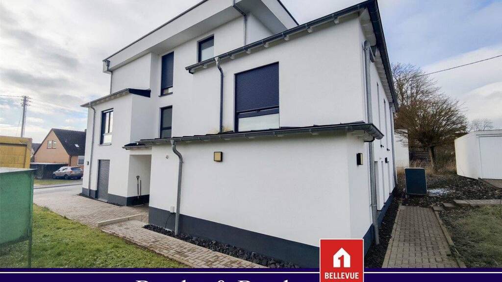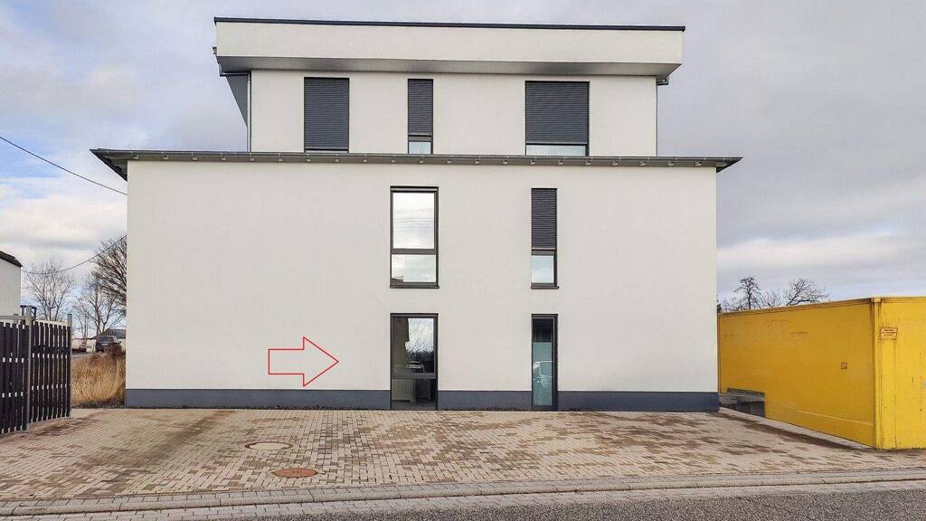 Diese neuwertige Eigentumswohnung befindet sich im Erdgeschoss eines 5-Parteienhauses, welches ca. 2021 in massiver Bauweise im Bauhausstil errichtet wurde. Das Gebäude ist nicht unterkellert. Die Wohnung verfügt jedoch über einen eigenen Abstell-/Waschraum. Die Wohnfläche ist barrierefrei, sodass diese besonders für Senioren ideale Voraussetzungen bietet, bis ins hohe Alter darin wohnen bleiben zu können. Über die geräumige Diele gelangt man zu den jeweiligen Zimmern. Das Wohnzimmer verfügt über eine offene Küche und Zugang zur eigenen Terrasse. Von dieser gelangt man weiter in den separaten Wasch- bzw. Abstellraum. Neben dem Wohnzimmer sind noch 2 weitere Zimmer, ein möbliertes Bad und ein Gäste-WC vorhanden.