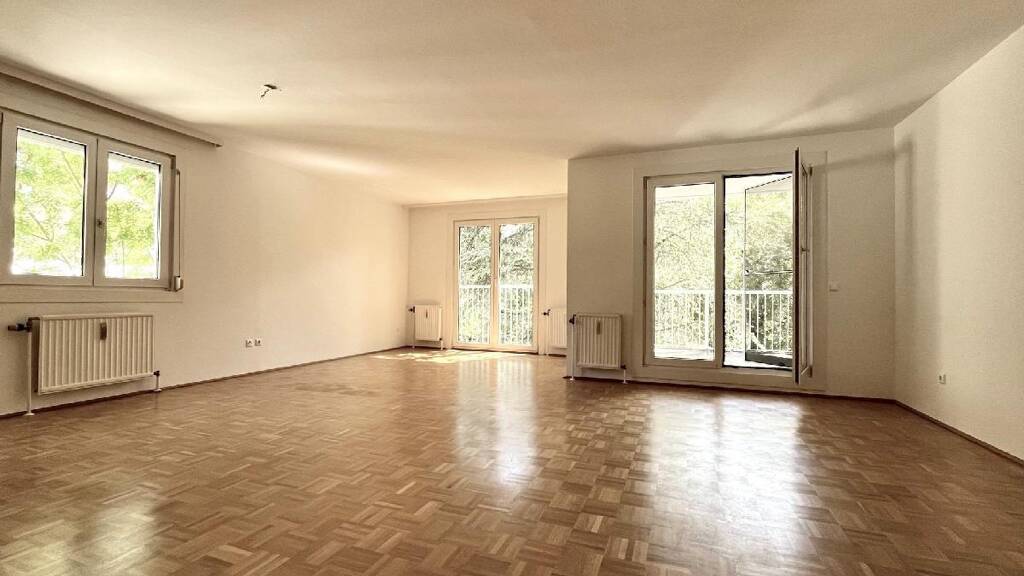 Über den Vorraum gelangen Sie links in ein Badezimmer und ein Schlafzimmer. Rechts befindet sich ein praktischer Abstellraum. Der Vorraum öffnet sich und führt zentral zu allen weiteren Bereichen der Wohnung: einem großzügigen Wohn- und Essbereich mit südseitiger Ausrichtung und Zugang zur Loggia/Balkon, von dem aus Sie einen herrlichen Parkblick genießen können. Am Ende des Flurs liegt die gut ausgestattete Küche. Zudem bietet die Wohnung ein weiteres großes Badezimmer mit Eckbadewanne und WC sowie ein separates Gäste-WC. Im hinteren Teil der Wohnung befinden sich zwei zusätzliche Schlafzimmer.