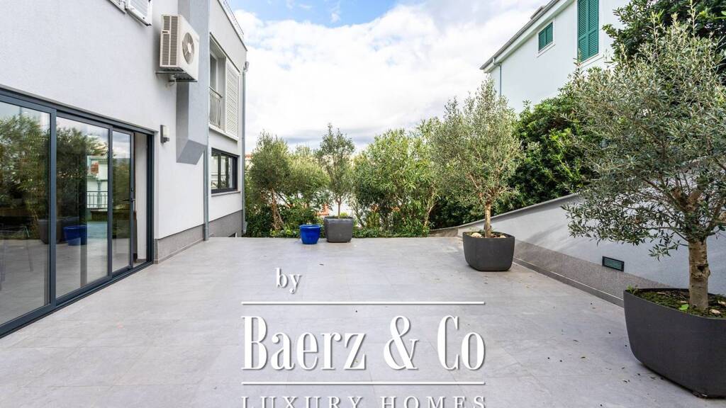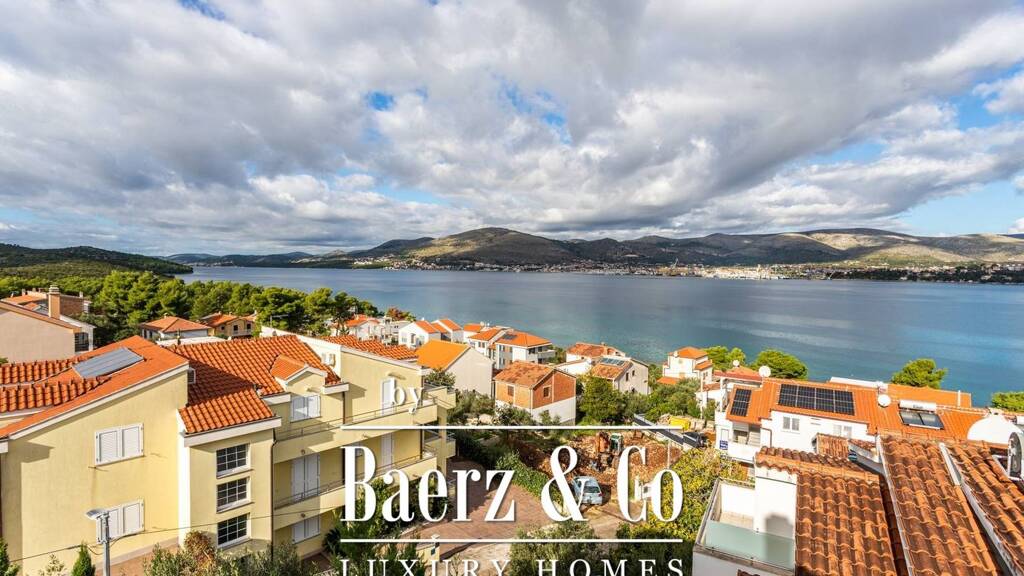 pthe villa is located in a quiet part of the island of Ciovo, in the small tourist town of okrug gornji. it is 200 m from the sea and offers a beautiful view of the Ciovo water area./ppthe yard is horticulturally decorated in a mediterranean style, it has an outdoor shower, a sunbathing area and a fireplace with a large table./ppthe house consists of four floors./ppthe basement consists of a garage, hallway, bathroom and two storage rooms./ppthe first accommodation unit is on the ground floor and consists of a spacious living room, kitchen and dining room, two bedrooms, three bathrooms and a storage room. it also has two large covered terraces of 67.51 m2./ppthe other two accommodation units are located on the first floor, and they are two apartments. the apartments consist of a kitchen and a dining room with a living room, two bedrooms and bathrooms. each apartment has a covered terrace with a beautiful view of the islands and the open sea./ppthe third accommodation unit is a penthouse and consists of a spacious living room, kitchen and dining room, bedroom, bathroom, storage room and a covered terrace of 48.73 m2./ppother information on request./p