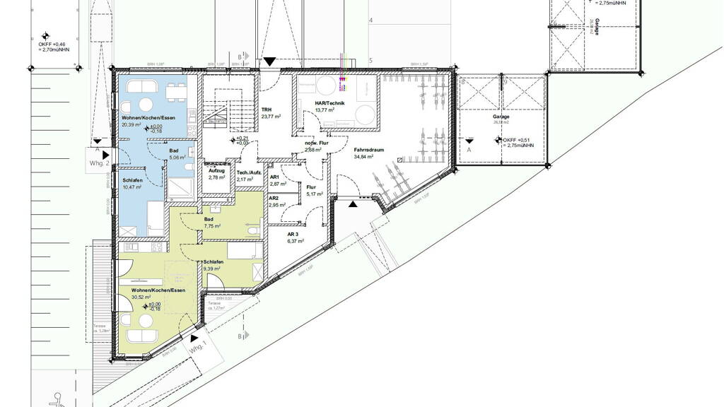 Eine Garage kann nach Verfügbarkeit zum Preis von 22.500 Euro erworben werden.