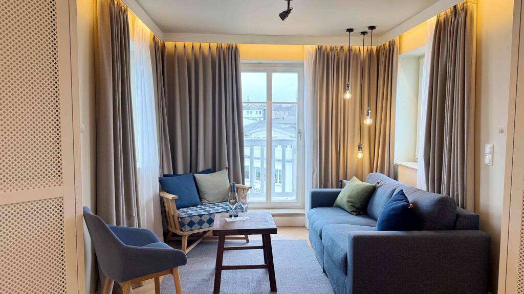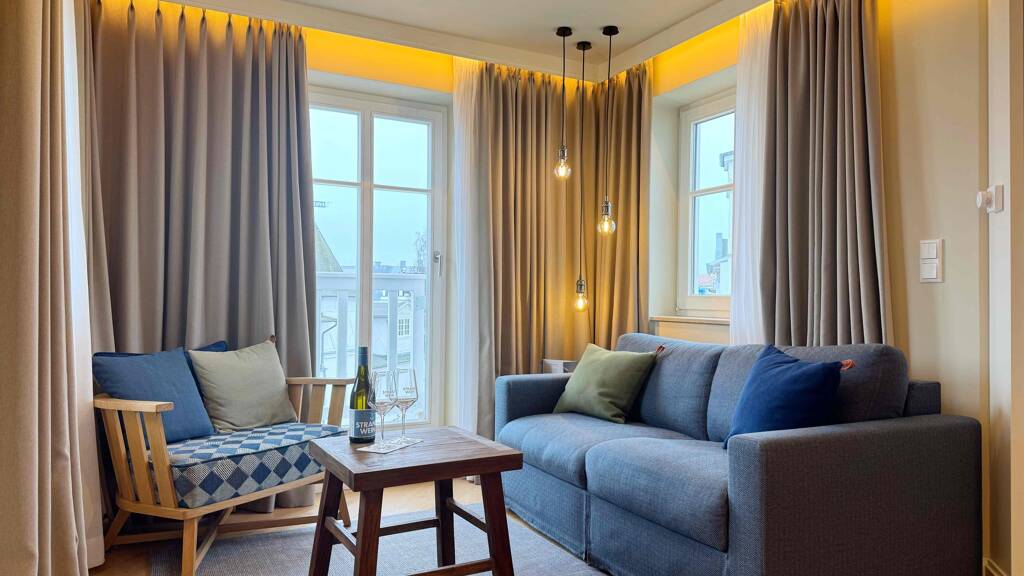 Das Loev Hotel begeistert mit seiner erstklassigen Lage nahe der Seebrücke und der lebendigen Einkaufsstraße sowie einer hochwertigen Ausstattung. Das angebotene Apartment befindet sich im Dachgeschoss und überzeugt mit einem durchdachten Raumkonzept. Eine separate Schlafecke sorgt für viel Privatsphäre, während der gemütliche Wohnbereich im Erker zum Verweilen einlädt.