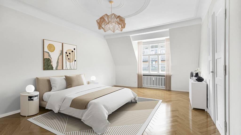 Die Wohnung befindet sich im Dachgeschoss eines traumhaft schönen, denkmalgeschützten Altbaus, welcher bereits durch seine entzückende Fassade bezaubert.