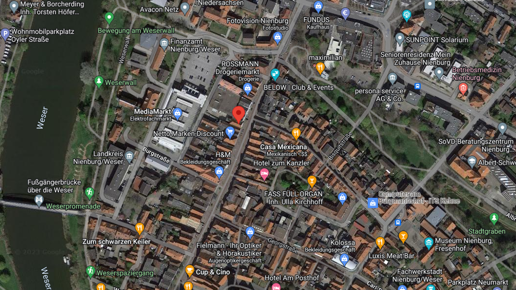 Die angebotene Wohnung befindet sich in zentraler Lage von Nienburg, direkt in der Fußgängerzone. Diese innerstädtische Wohnlage verbindet urbanes Leben mit kurzen Wegen zu sämtlichen Einrichtungen des täglichen Bedarfs. Einkaufsmöglichkeiten, Cafés, Restaurants sowie diverse Dienstleistungsangebote befinden sich in unmittelbarer Umgebung und sind bequem zu Fuß erreichbar.