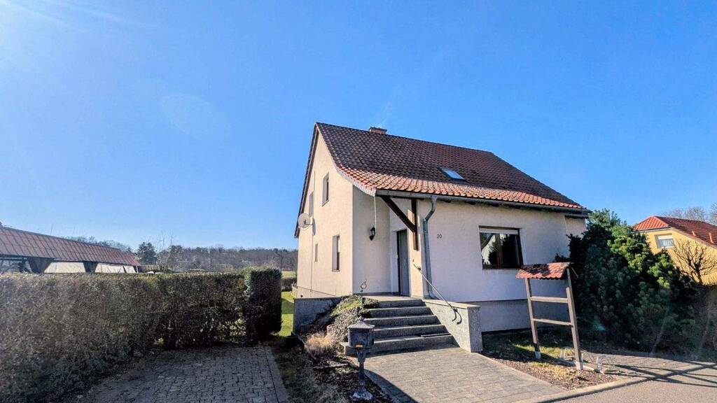 Das Wohngrundstück befindet sich an einer ruhigen Anliegerstraße, umgeben von weiteren Einfamilienhäusern und angrenzenden Feldern, die eine entspannte und naturnahe Umgebung bieten. Diese Lage ermöglicht sowohl Ruhe als auch eine gute Anbindung an die Infrastruktur.