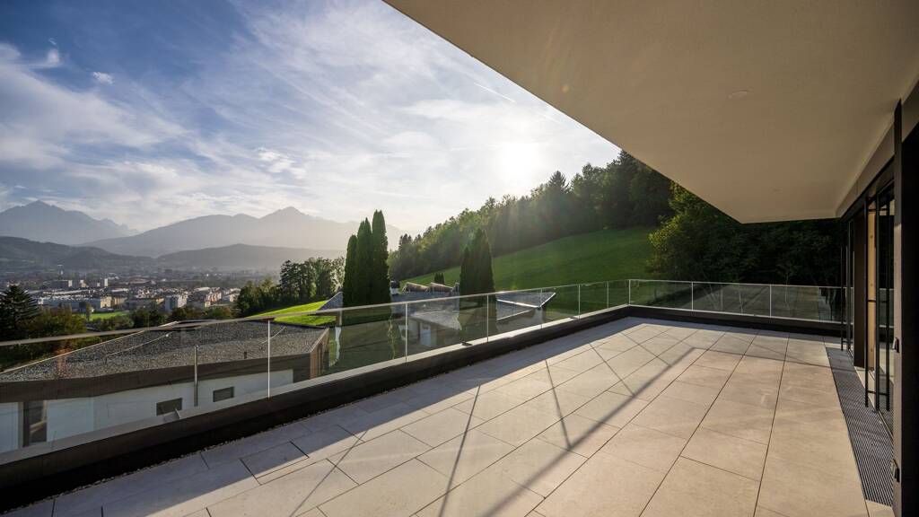 hochwertige Ausstattung: Holz-/Alufenster, Landhausdiele (Echtholzparkett), großflächige Fliesen (Feinsteinzeug), Sonnenschutz mit Funk (Raffstores), große Terrassen mit Blick auf den Patscherkofel, die Serles und die Nockspitze