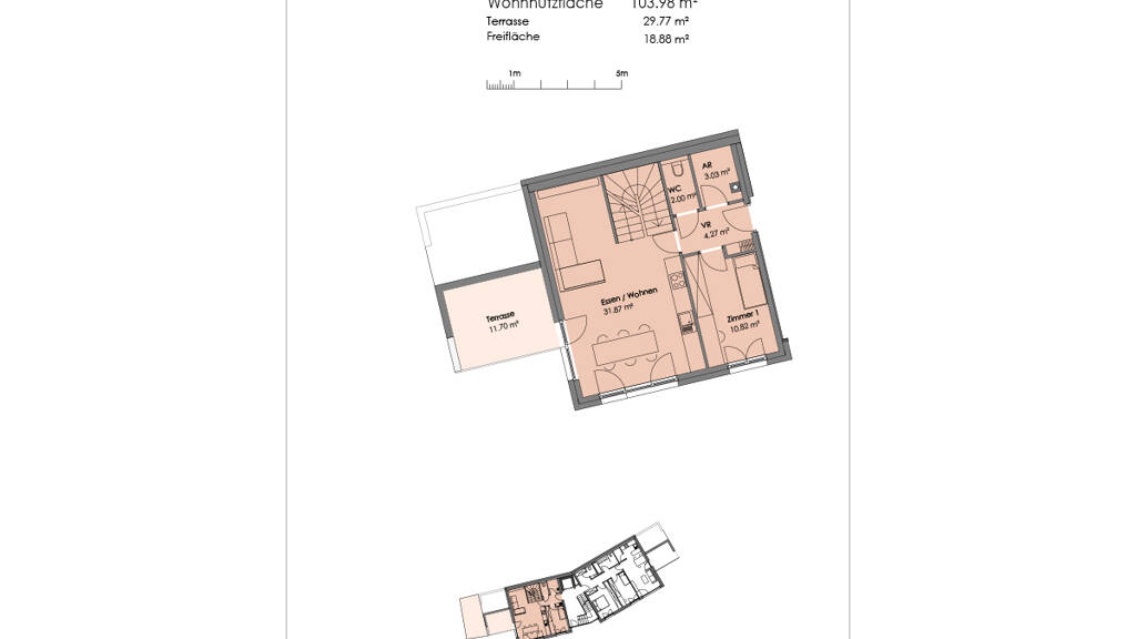 Top 2: - Wohnnutzfläche: 103,98 m² - Terrasse: 29,77 m² - Freifläche: 18,88 m² - 4 Schlafzimmer - Kaufpreis inkl. 1 Tiefgaragenplatz: € 590.000