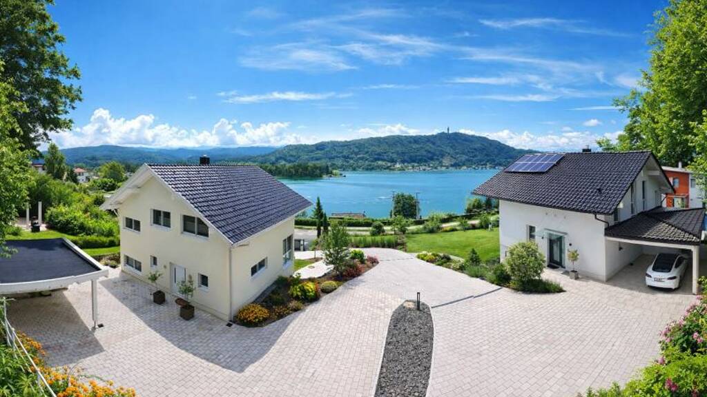 Wir präsentieren Ihnen ein exklusives Anwesen mit zwei stilvollen Seeblickvillen, die höchsten Wohnkomfort mit einer unvergleichlichen Aussicht auf den Wörthersee vereinen. In leicht erhöhter Lage genießen Sie hier ein beeindruckendes Panorama über das türkis schimmernde Wasser bis hin zur malerischen Kirche von Maria Wörth.