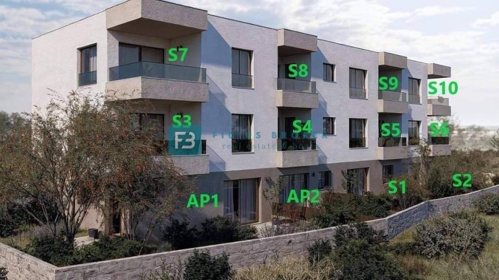 In ruhiger Lage entsteht ein modernes Wohngebäude mit 12 Wohneinheiten. Es erstreckt sich über drei Etagen: Erdgeschoss, 1. Obergeschoss und 2. Obergeschoss. Für den Bau werden hochwertige Materialien nach neuesten Baustandards verwendet. Zur Ausstattung gehören unter anderem: Polystyrolfassade, Sicherheitstüren, Glasgeländer auf den Terrassen, elektrische Fußbodenheizung in den Badezimmern, moderne Sanitäreinrichtungen, hochwertige Bodenbeläge, PVC-Fenster und -Türen mit Dreifachverglasung, elektrische Rollläden mit Insektenschutzgittern, Klimaanlage im Wohnzimmer sowie Vorbereitung für Klimaanlagen in den Schlafzimmern. Die Erdgeschosswohnungen verfügen über einen eigenen Gartenbereich. Jeder Wohnung ist ein Parkplatz zugeordnet. Der geplante Baubeginn ist für Sommer 2026 vorgesehen, die Fertigstellung und der Einzug für Ende 2027.