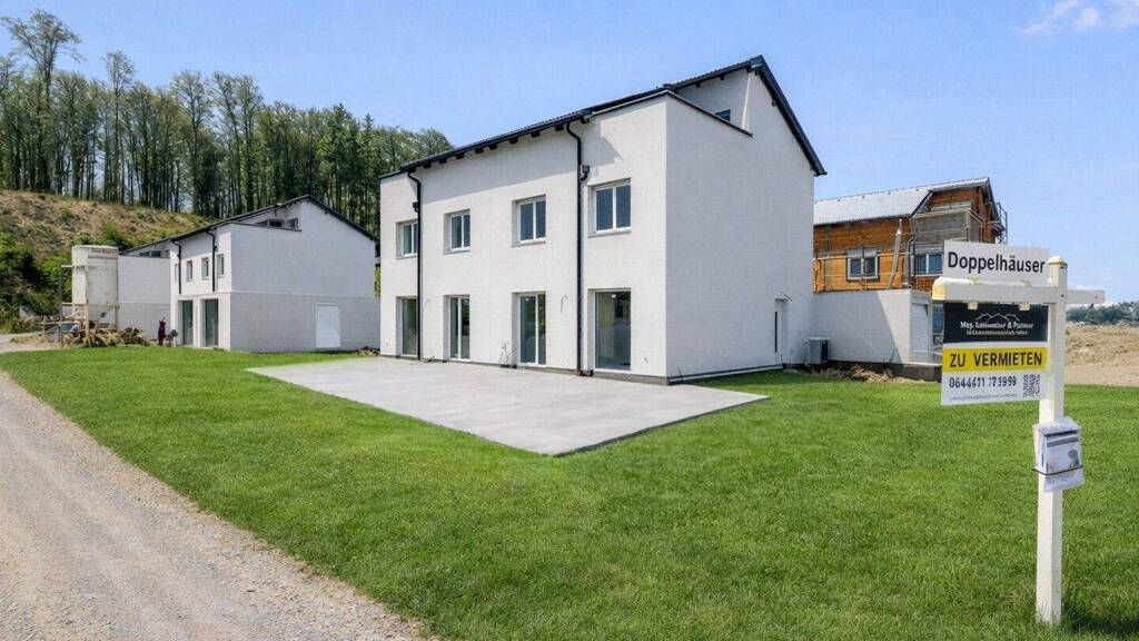 Jetzt mieten / Kaufoption! Traumhafte Neubau Doppelhaushälften 128 m² Wfl. mit Büro / Galerie, Dachterrasse, Eigengarten & Garage in Attnang-P.