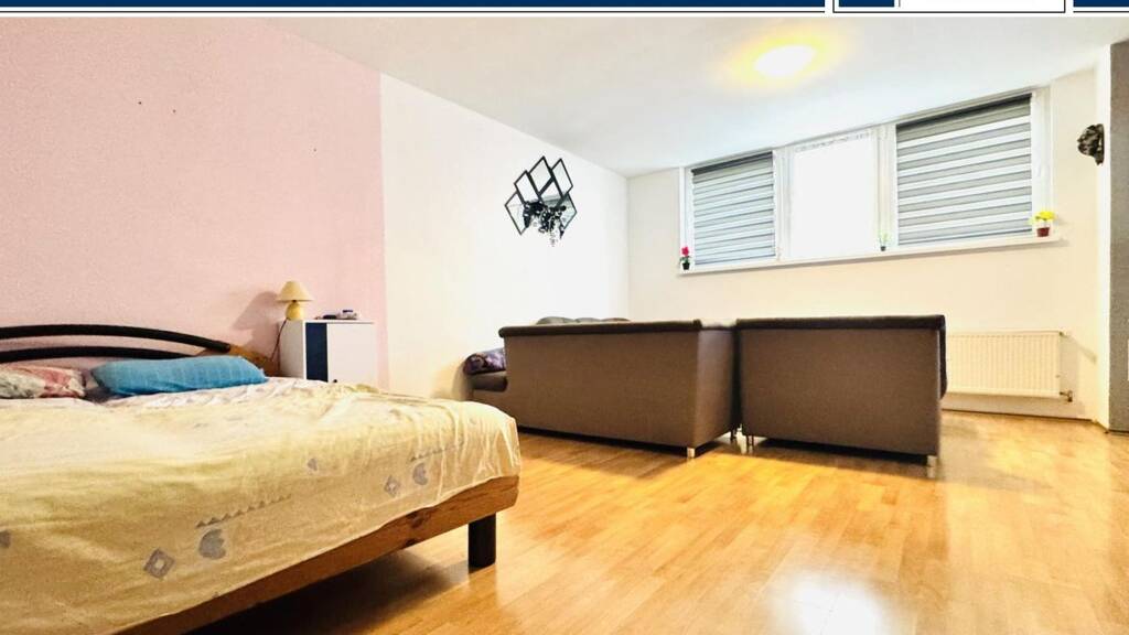 Die Wohnung ist als 1,5-Zimmer-Appartement gestaltet, welches mit einer Zentralheizung ausgestattet ist, die für eine angenehme und gleichmäßige Wärmeverteilung sorgt. Die Wohnfläche verteilt sich auf einen großzügigen Wohn- und Schlafbereich, der durch seine offene Gestaltung vielseitige Einrichtungsvarianten ermöglicht. Große Fensterflächen sorgen für eine helle und freundliche Atmosphäre und bieten einen angenehmen Ausblick auf die Umgebung.