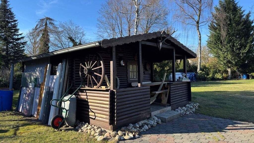 Ergänzt wird das Platzangebot durch den geräumigen Vollkeller im Haupthaus, zwei Garagen am Hinterhaus mit riesigem Stauraum dahinter, eine Blockhütte als weitere Garage und Carport sowie eine Partyhütte auf dem hinteren parkähnlichem Gartenteil mit 100 m² großem Naturteich.