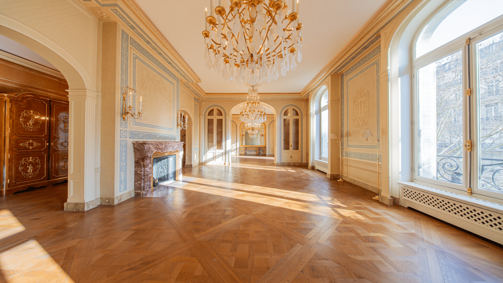 In unmittelbarer Nähe des Place d'Iéna und im zweiten Stock eines 1925 erbauten Steingebäudes von GRAND STANDING, PRÄCHTIGE REZEPTIONSWOHNUNG von 325m2, komplett RENOVIERT von einem ARCHITEKTEN. Es besteht aus einer eleganten Eingangsgalerie, die sich zu einer DREIFACHREZEPTION öffnet, einem großen Esszimmer, einer HERRLICHEN Master-Suite mit Ankleidezimmer und Bad, einem Büro, zwei weiteren Suiten und einer großen Essküche. Die Wohnung verfügt über einen großen Balkon mit freiem Blick. Sehr hohe Decken. Klimatisierung. Ein Service-Apartment von 27m2, eine BOX und drei Keller vervollständigen dieses außergewöhnliche Anwesen. Miteigentum an 16 Grundstücken. Jährliche Nebenkosten: 21.668 Euro (inkl. Gemeinschaftsheizung und Hausmeister). Warmwasserspeicher. Clase Energie: E. Kein laufendes Verfahren gemäß Artikel L. 721-1 des Bau- und Wohnungsgesetzbuches.