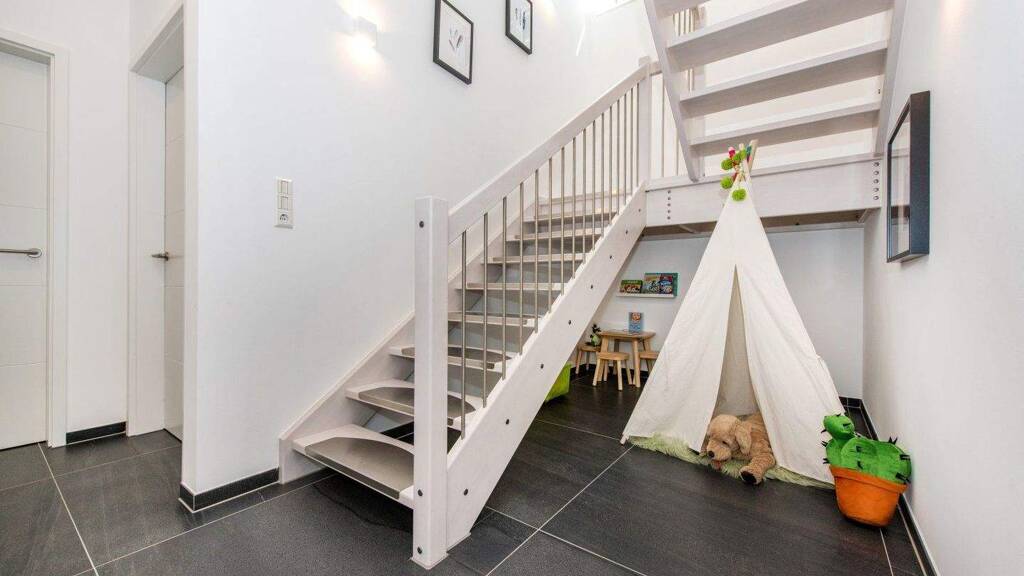 Hier findet jedes Familienmitglied seinen eigenen Bereich. Die Kinder haben Platz für ihre kleine Welt, das Elternschlafzimmer mit Ankleide bietet Privatsphäre und Ruhe, während die Bäder tägliche Routinen in entspannte Wohlfühlmomente verwandeln.