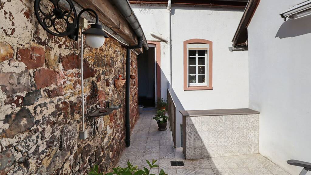 Inmitten der Altstadt von Grünstadt befindet sich dieses stilvolle und gut gepflegte Einfamilienhaus, das durch seinen liebevoll gestalteten Innenausbau und praktische Extras besticht. Der Innenhof hat eine Kombination aus Naturstein, Holz und modernem Ausbau. Schafft eine behagliche, fast mediterrane Atmosphäre. Die überdachte Terrasse bietet Platz für Grillabende, Fahrräder oder einen Whirlpool, wie aktuell genutzt. Im ausgebauten Dachgeschoss befindet sich ein großzügiges Schlafzimmer mit offenem Sichtgebälk und charmantem Holz-Dachausbau. Ein großes Dachflächenfenster sorgt für angenehmes Tageslicht. Angrenzend findet sich ein begehbarer Kleiderschrank mit Dachgaube und individuell angepasster Kleiderstange - praktisch und stilvoll zugleich. Das Haus überzeugt durch seine klassische Raumaufteilung, eine solide Bausubstanz und viele liebevolle Details. Durch fortlaufende Renovierungen wurde der Charme des Ursprungsbaus bewahrt und gleichzeitig moderner Wohnkomfort geschaffen. Ein Haus, das Platz für Ihre Familie und Ihre Zukunft bietet - ich freue mich, es Ihnen bald persönlich zeigen zu dürfen