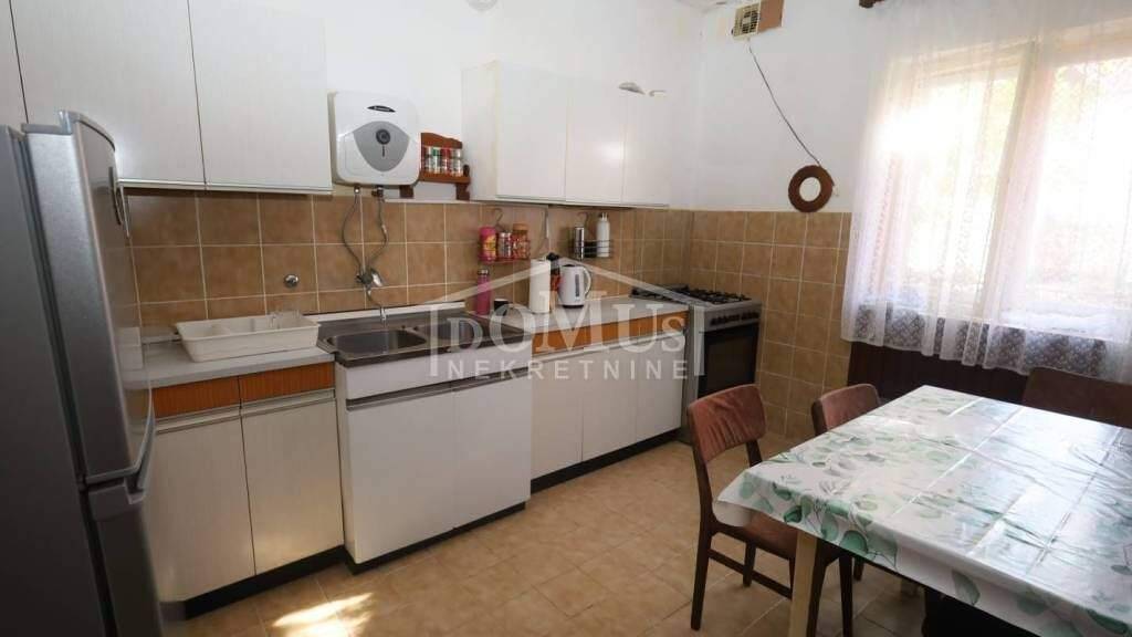 In Pirovac, in ruhiger Lage, befindet sich ein Einfamilienhaus auf drei Etagen (Erdgeschoss + 1. Stock + 2. Stock) mit einer Gesamtwohnfläche von 213,37 m². Im Erdgeschoss befindet sich eine komfortable Zweizimmerwohnung mit Bad, Flur, Küche mit Essbereich und großem Wohnzimmer mit Zugang zu einer Loggia von 18,27 m². Eine Außentreppe führt in den ersten Stock, wo sich eine Wohnung mit drei Schlafzimmern befindet, von denen zwei einen Balkon von 10,02 m² teilen. Außerdem gibt es ein Bad, eine Küche mit Ess- und Wohnbereich, der auf eine Terrasse führt. Der erste Stock ist sowohl durch eine innere als auch eine äußere Treppe mit dem zweiten Stock verbunden. Im zweiten Stock befinden sich zwei Einzimmerapartments mit einem gemeinsamen Balkon. Das Haus verfügt über eine Garage (17,25 m²), einen kleinen Abstellraum und einen Steingrill. Der Hof ist eingezäunt und hat einen angelegten Garten. Die Entfernung zum Meer/Strand beträgt 400 m, und zum Ortszentrum 1.400 m.