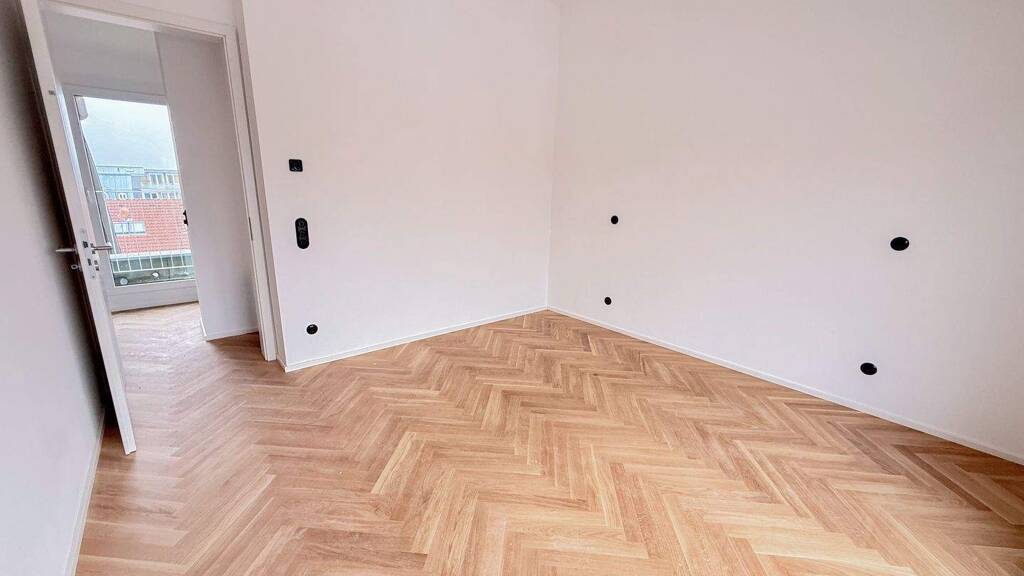 Die Wohnung verfügt über ein offenes Raumkonzept mit großzügigen Fensterflächen und guter Belichtung. Der Wohn-, Ess- und Küchenbereich umfasst ca. 40 m² und bildet den zentralen Aufenthaltsbereich. In der gesamten Wohnung wurde neuer, hochwertiger Fischgrätparkett verlegt. Decken-Einbauspots sorgen für eine gleichmäßige Beleuchtung, zusätzlich ist in allen Räumen eine Fußbodenheizung installiert.