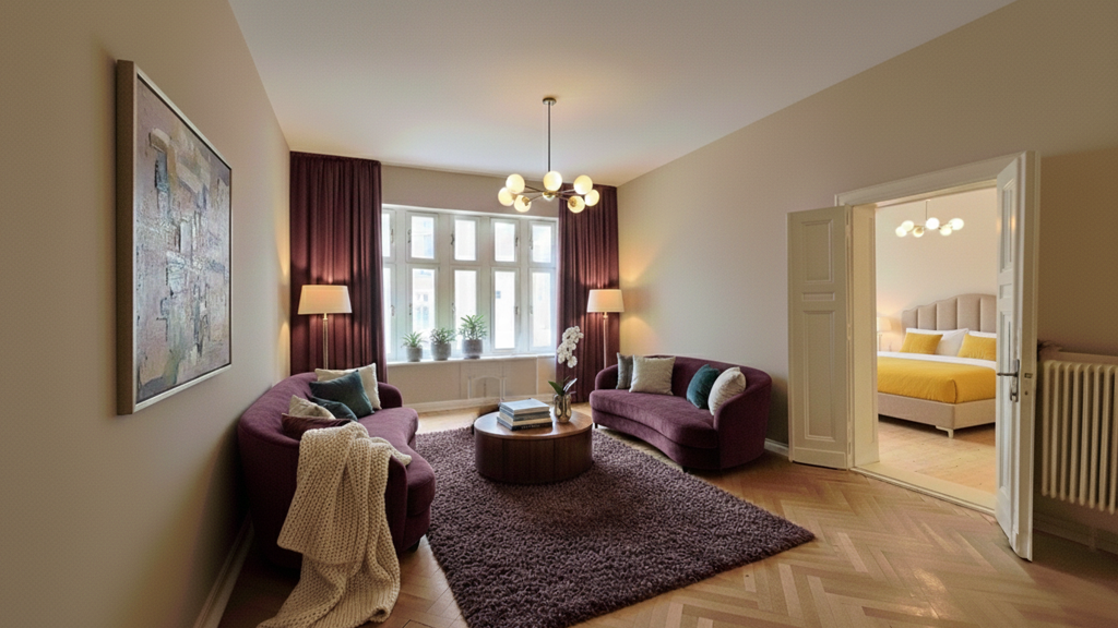 Die ca. 92,02 m² große Einheit liegt im 1. Obergeschoss eines Gründerzeithauses. Der Zugang erfolgt über die elegante und repräsentative Leibnizstraße, während sämtliche Wohnräume sowie der Balkon zur ruhigen Niebuhrstraße ausgerichtet sind – eine ideale Kombination aus urbaner Lage und angenehmer Wohnruhe.