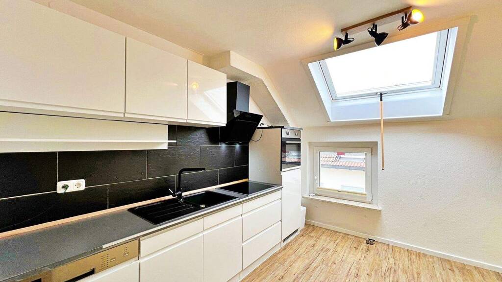 Große Dachfenster für viel Licht, eine Einbauküche und gemütlicher Kaminofen schaffen Wohlfühlambiente. Das Badezimmer ist vollständig erneuert mit großer Dusche. Ein Außenstellplatz steht ebenfalls zur Verfügung.