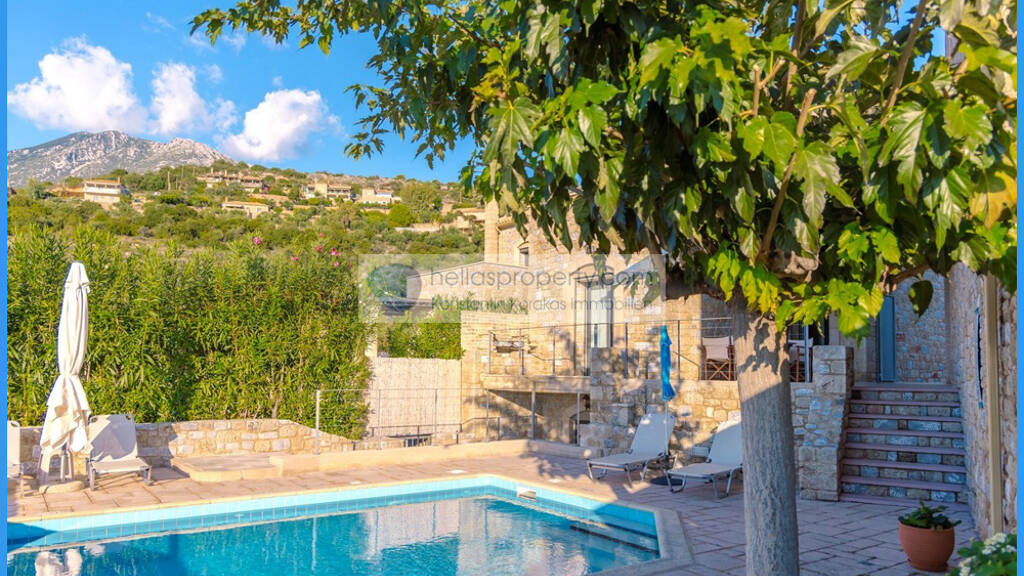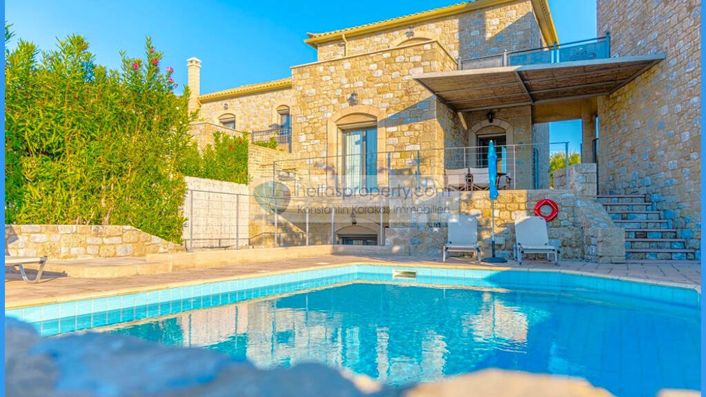 Ausgezeichnetes Einfamilienhaus mit Steinelementen, Pool und freien Blick auf den Messinischen Golf.