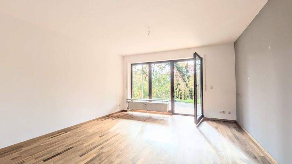 Der helle Wohn- und Essbereich ist das Herzstück der Wohnung. Durch die großen Fensterflächen wirkt der Raum besonders freundlich und einladend, während der Zugang zur Terrasse fließend den Innen- und Außenbereich miteinander verbindet. Hier lässt sich der Feierabend in ruhiger Umgebung genießen, umgeben von Grün und frischer Luft.