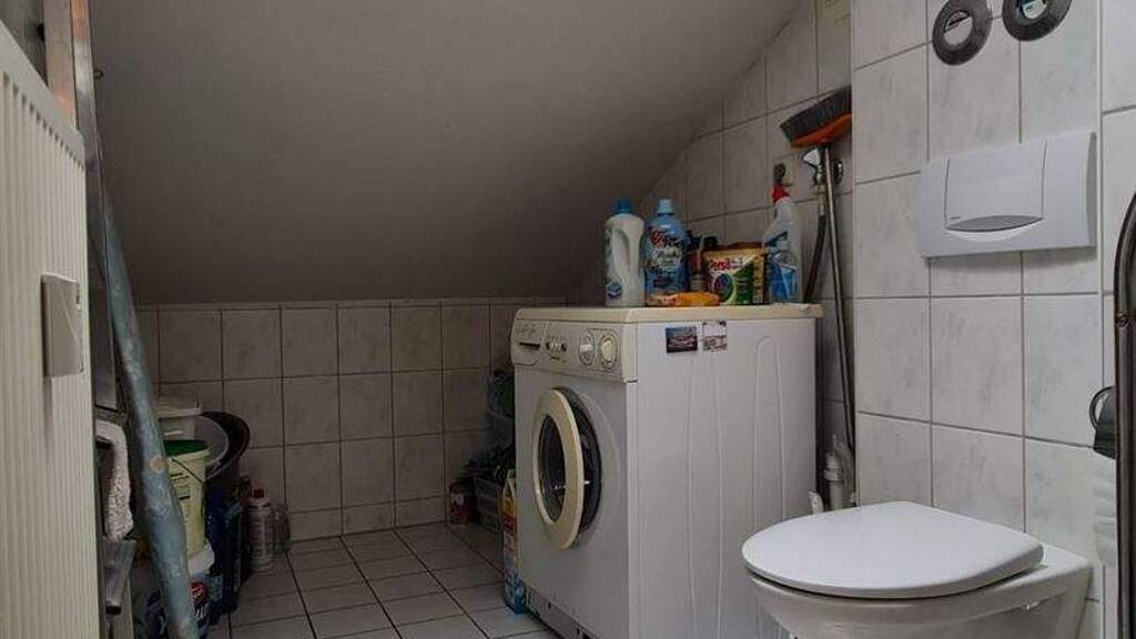 Das Tageslichtbad mit Dusche, WC und Waschmaschinenanschluss präsentiert sich funktional und gepflegt.
