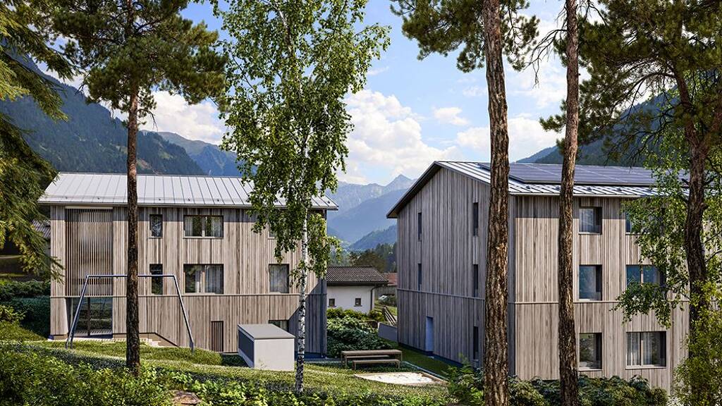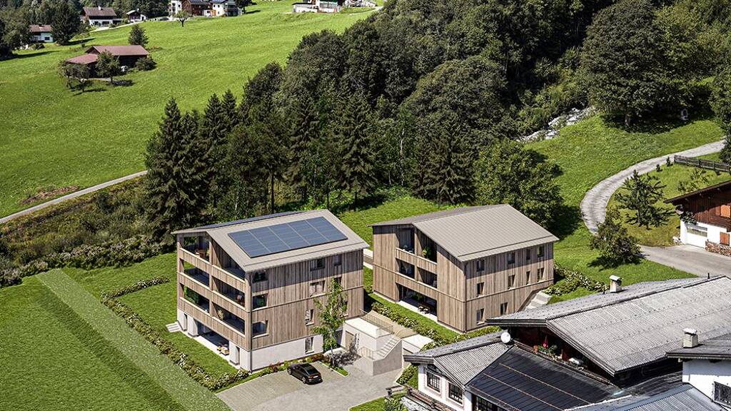 Es werden zwei Wohnhäuser versetzt zueinander entstehen - jeweils mit lediglich zwei Wohnungen pro Geschoss. Durch die geschickte Anordnung der Baukörper profitieren alle der insgesamt 12 Wohneinheiten von den Vorteilen der Südausrichtung und des unverbaubaren Ausblicks. Dem vorhandenen Ortsbild von St. Gallenkirch folgend, werden die beiden Wohnhäuser mit einem klassischen Satteldach und einer Materialisierung in Holz ausgeführt.