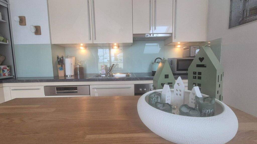 In der Wohnung oben angekommen finden Sie ein erholsames Refugium mit einem echten Highlight. Die eigene quadratische Dachterrasse mit einer Fläche von ca. 30 m² ist beindruckend und bietet eine großartigen Bergpanoramablick.