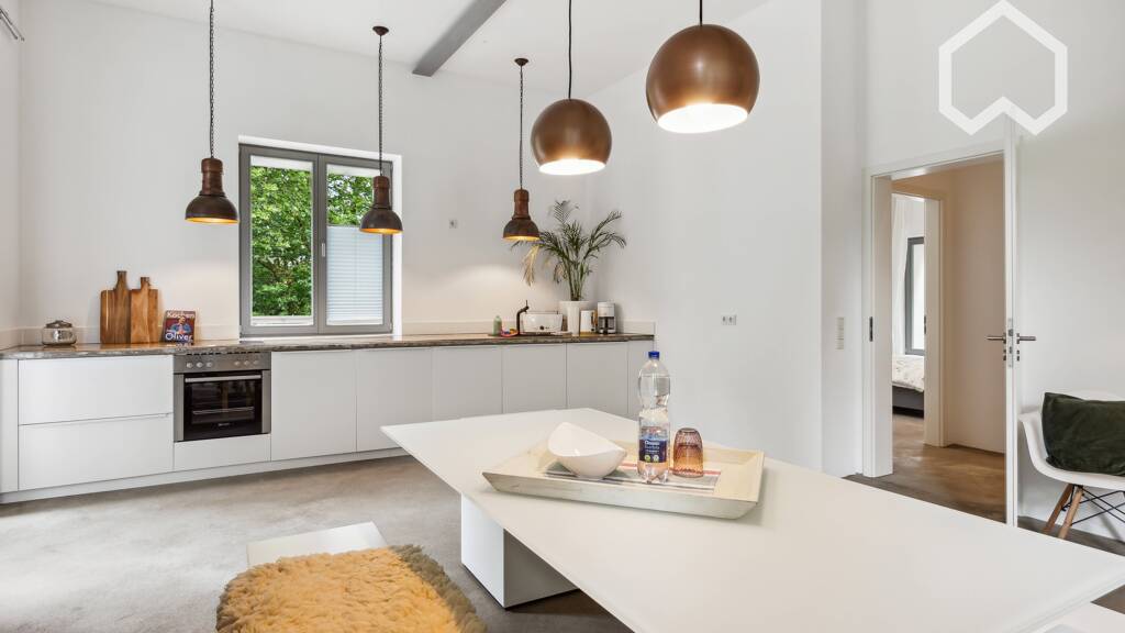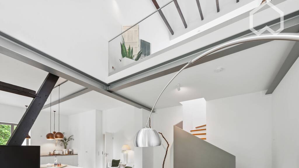 Diese neue Designerloft ist ein Niedrigenergiehaus in einem denkmalgeschützten Gebäude und befindet sich in direkter Nähe zu einem Naturschutzgebiet und dem Baldeneysteig sowie dem Baldeneysee, die fußläufig in wenigen Minuten erreichbar und als Naherholungsgebiet bekannt sind.