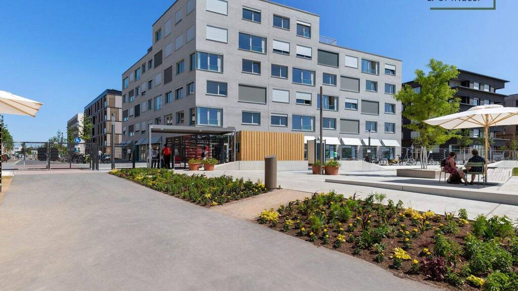 Insgesamt stehen im FLAIRWOOD & SPINELLI 45 Wohnungen und 3 Wohngemeinschaften mit 1- bis 4-Zimmer-Wohnungen zur Verfügung, ergänzt um eine Quartiersgarage mit PKW-Stellplätzen. Die begrünte Außenanlage bietet Sitzflächen und dient als Begegnungsort des Quartiers.