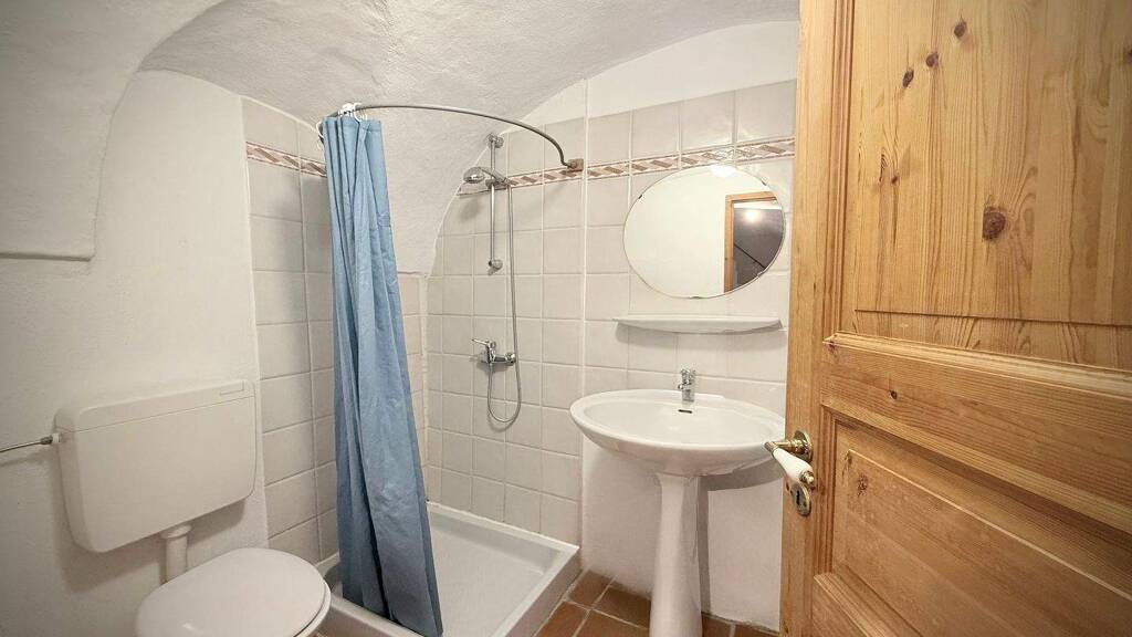 Besonders hervorzuheben ist die äußerst praktische Lage am Rand des autofreien Ortskerns. Direkt neben dem Haus befindet sich eine öffentliche Garage, die zum Be- und Entladen bequem angefahren werden kann; gegebenenfalls besteht zudem die Möglichkeit, dort einen Stellplatz anzumieten. Diese Kombination aus mittelalterlichem Dorfcharme und guter Erreichbarkeit macht das Haus im Alltag ungewöhnlich komfortabel.