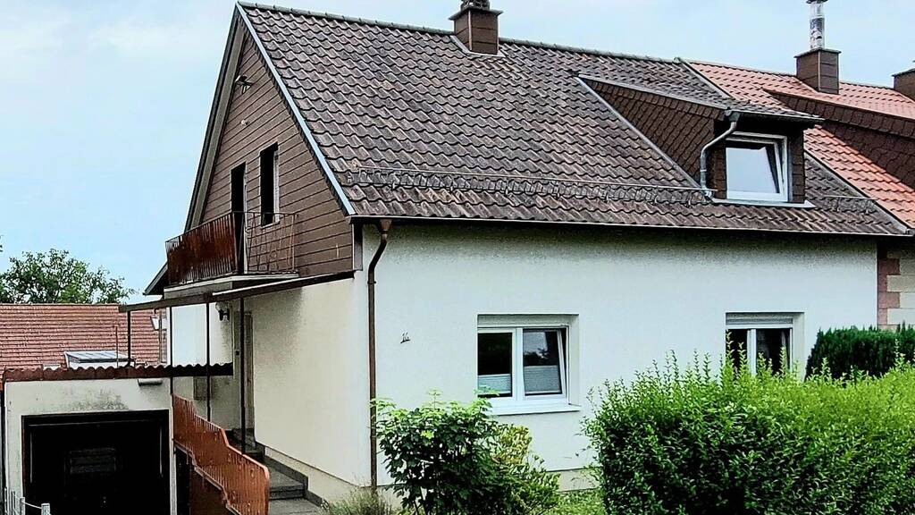 Das einseitig angebaute Einfamilienhaus mit insgesamt ca. 140 m² Wohnfläche bietet das Potenzial für eine Aufteilung in zwei Wohnungen. Eine Garage für 2 Fahrzeuge ergänzt das Objekt.