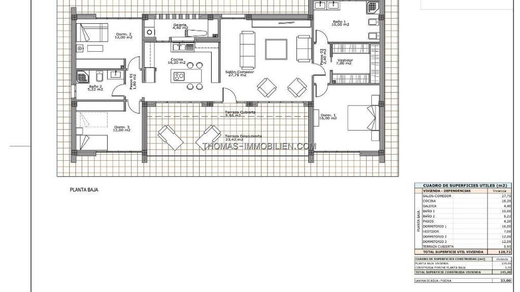 NEU GEBAUTE VILLEN IN PINOSO Sie haben die Wahl zwischen Villen mit traditionellem spanischem Flair oder supermoderner Ausstattung, hell und sauber. Es stehen verschiedene legale Baugrundstücke zur Verfügung (rustikal mit mindestens 10.000 m2), einige in Gehdistanz zur Stadt, einige ganz privat und unsere beliebtesten sind nur 5-10 Minuten mit dem Auto von einer Stadt entfernt. Wir haben ein Grundstück für jeden Geschmack, alle mit atemberaubender Aussicht und alle haben Wasser und Strom im Preis inbegriffen und High-Speed-Internet verfügbar. Die Häuser werden vom größten und besten Bauunternehmen in der Gegend gebaut und sind mit hochwertigen Materialien ausgestattet, die für eine perfekte Ausführung sorgen. Alle Häuser verfügen über eine 2 m lange Terrasse aus gestampftem Beton um den Pool (Farbe und Muster nach Wahl), 1 m um das Haus, einen bewachten Eingang, einen 3.000 m2 großen Zaun, eine vorinstallierte Klimaanlage, eine Standardküche, eine Sicherheitstür, deutsche Dreh-Kipp-Fenster (oder Schiebefenster, falls gewünscht), einen eingebauten Kamin, eine Vorinstallation für Fernsehen und Internet, eine Kiesauffahrt und einige Meter um das Haus herum sowie eine Klärgrube. Die Bäder verfügen über eine Duschsäule, eine Duschwanne oder eine Badewanne, Waschbecken (verschiedene Farben zur Auswahl) mit Waschbecken, Armaturen und Spiegeln sowie eine große Auswahl an Wandfliesen. Große Auswahl an keramischen Bodenfliesen, verschiedene Farben, Holzoptik, etc. Die Küchen beinhalten Schränke mit Standardtüren und Griffen, wie in den Plänen angegeben, Edelstahlspüle und Wasserhahn, Vorinstallation für Ofen, Geschirrspüler, Dunstabzug. Verschiedene Granit-Arbeitsplatten zur Auswahl sind im Budget enthalten, andere Stein-Arbeitsplatten sind als Extras erhältlich. Weiße Ware nicht inbegriffen. Marmortreppe (cremefarben, weiß oder grau) und Geländer inbegriffen, plus Geländer für die vordere Veranda. Großes festes Glasfenster auf der Treppe für mehr Licht. Auswahl der Fliesen und der Stufen für das Schwimmbad. Wahl des Granits für die Außentreppen und Fensterbänke des Hauses. Sie können das Haus nach Ihren Wünschen gestalten, die meisten internen Änderungen sind kostenlos, die Häuser können erweitert werden und wir können sogar Ihr eigenes Design bauen. Gegen Aufpreis können Sie einen größeren Pool, eine Einzel- oder Doppelgarage, ein Gästehaus, usw. erwerben. Die schöne und blühende Stadt Pinoso liegt etwa 45 Minuten landeinwärts von Alicante und den weißen Stränden der Costa Blanca und nahe der Grenze zwischen Murcia und Alicante. Sie hat knapp 8.000 Einwohner. Pinoso, auch bekannt als El Pinos, ist nach den Pinien benannt, die die Bergketten der Gegend bedecken. Pinoso bietet ein spanisches Landleben, keine Ampeln, kaum Verkehr, praktisch die einzigen Staus werden von den Traktoren verursacht, die die Trauben zur Bodega bringen. Die Felder sind mit Weinreben, Mandeln und Oliven bepflanzt. Im Februar sind die Felder mit rosa Mandelblüten gefüllt. Pinoso hat viele Bars, Restaurants und Geschäfte, ein neues 24-Stunden-Ärztezentrum, Zahnärzte, zwei Grundschulen und eine weiterführende Schule, ein Theater. Es gibt ein ausgezeichnetes Sportzentrum mit Freibädern, Tennis- und Fußballplätzen, einer Turnhalle, einer Bibliothek und vielen anderen Einrichtungen, darunter ein schöner Picknickplatz unter den Kiefern mit Grillplätzen, Sitzgelegenheiten und fließendem Wasser.