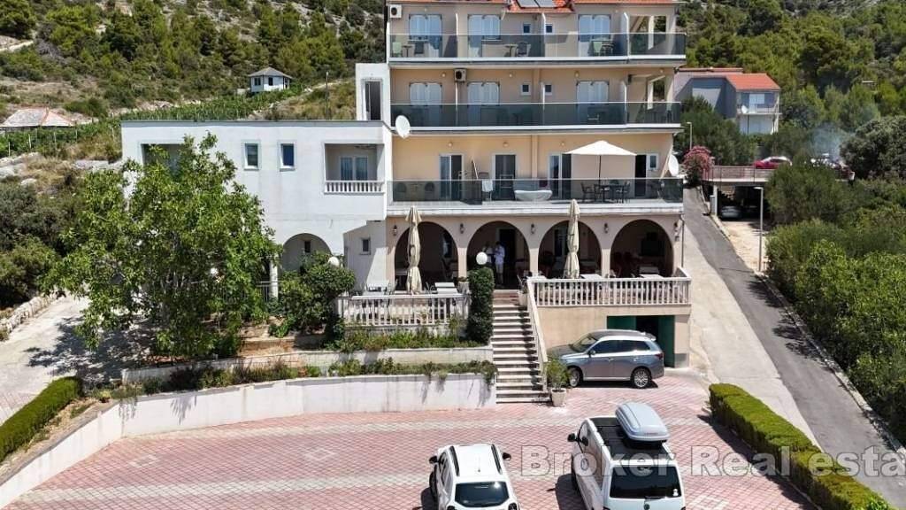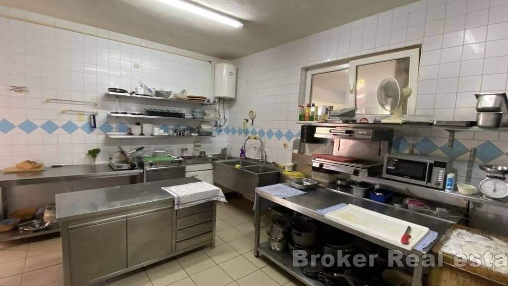 Das Anwesen befindet sich neben der Hauptstraße und ist leicht zu erreichen und gut sichtbar, was es zu einer idealen Investitionsmöglichkeit und Geschäftsmöglichkeit macht. Nur 70 m zum Meer und 40 km zum Flughafen Split.