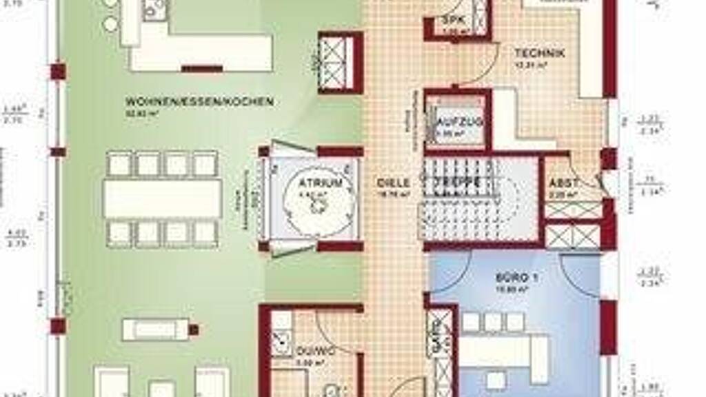 Verwirklichen Sie Ihr Traumhaus nach Ihren Wünschen und Vorstellungen ganz individuell mit Bien-Zenker und nutzen Sie hierbei unsere 115jährige Erfahrung & Kompetenz! Durch die individuellen Gestaltungsmöglichkeiten planen Sie mit unseren Architekten Ihr ganz persönliches Eigenheim. Auf 240m² entsteht für Sie ein großzügiger lichtdurchfluteter Wohn-Essbereich incl. offener Küche mit Kochinsel.