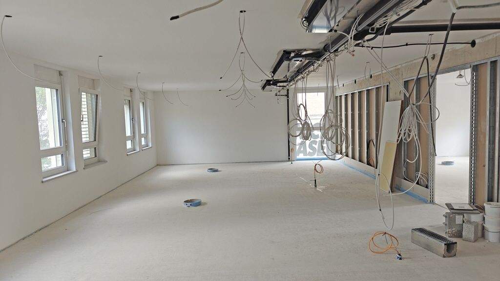 Neubau Bürogebäude 2024 in KfW-55 Bauweise Umweltschonende und energieeffiziente Luft-/Wasser-Wärmepumpe Großzügiges helles Treppenhaus Tiefgarage mit ausreichend Stellplätzen Ausbau Boden und Grundriss nach Mieterwunsch Barrierefreie Zugänge Barrierefreier Aufzug Im EG und der Tiefgarage elektrische Türöffnung Helle Räume Laden EG mit Klimatisierung Raffstorerollos im 1. OG bis 3. OG EDV-Verkabelung in Bodentanks Dezentrale Warmwasserversorgung