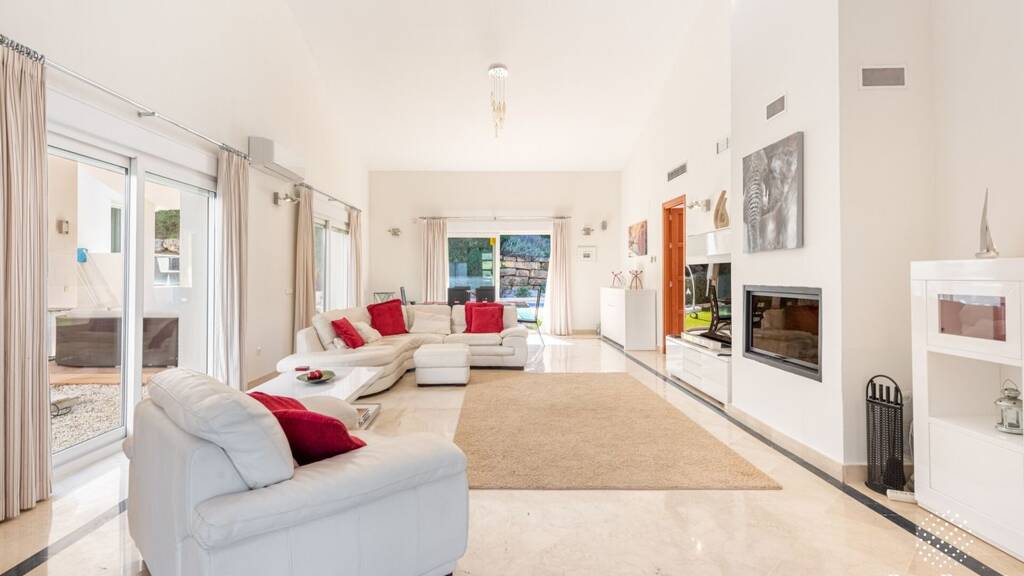 Die Villa hat einen Panoramablick auf den Golfplatz auf der einen Seite des Wohnzimmers und Gartenblick auf der anderen.