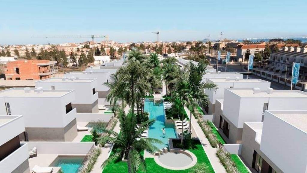Gelegen in der charmanten Gemeinde Los Alcázares bietet diese Wohnanlage eine Auswahl von 18 Immobilien, entworfen, um den Bedürfnissen von Menschen gerecht zu werden, die ein Zuhause in privilegierter Umgebung suchen. Die Wohnformen umfassen unabhängige Chalets, Bungalows mit Solarium und Bungalows mit Garten, angepasst an unterschiedliche Lebensstile und Vorlieben. Die Nähe zum Meer, nur 1 km entfernt, ermöglicht das Genießen der Meeresbrise und angenehmer Spaziergänge entlang der Küste. Zudem liegt der Flughafen 45 km entfernt, was den Zugang für Vielreisende erleichtert. Diese Merkmale machen die Anlage zu einer attraktiven Option für alle, die Komfort und eine strategische Lage schätzen.LAGE UND AUSSENBEREICHEDie Außenbereiche dieser Immobilien sind sorgfältig gestaltet, um Entspannungs- und Freizeitmöglichkeiten im Freien zu bieten. Jedes Objekt verfügt über einen privaten Garten, ideal, um eine persönliche Oase zu schaffen oder Momente mit der Familie zu genießen. Die großzügigen Terrassen ermöglichen die volle Nutzung des milden Klimas und bieten einen perfekten Ort für Outdoor-Dinner oder einfach zum Entspannen. Außerdem verfügen einige Immobilien über ein Solarium, das zusätzlichen Platz zum Sonnenbaden oder Genießen der Aussicht bietet. Die optionale private Poolanlage in bestimmten Häusern verleiht dem Zuhause einen Hauch von Luxus und Exklusivität.INNENRAUMAREBITes Innenleben dieser Wohnungen ist darauf ausgelegt, Komfort und Funktionalität zu vereinen. Mit einer Raumaufteilung, die drei Schlafzimmer und zwei Badezimmer umfasst, ist jeder Bereich optimal nutzbar. Bodenbeläge aus Porzellanfliesen verleihen dem Interieur einen modernen und eleganten Touch, während elektrische Rollläden und integrierte Haushaltsgeräte den Alltag erleichtern. Eingebaute Schränke bieten effizienten Stauraum, Ordnung und Ästhetik bleibend. Zudem sorgt die Vorinstallation einer Klimaanlage dafür, dass das Zuhause das ganze Jahr über eine angenehme Temperatur behält. Diese Details spiegeln ein Engagement für Qualität und Komfort wider.COMMUNITYBEREICHEDie gemeinschaftlichen Bereiche der Residencia sind darauf ausgelegt, einen aktiven und sozialen Lebensstil zu fördern. Gemeinschaftsgärten bieten grünen Raum, in dem Bewohner die Natur genießen und sich entspannen können. Das Gemeinschaftspool bildet einen idealen Treffpunkt zum Netzwerken und Genießen des guten Wetters, und schafft einen sicheren und angenehmen Ort für die ganze Familie. Diese Gemeinschaftsbereiche ergänzen die individuellen Merkmale jeder Wohnung und schaffen ein ausgewogenes, einladendes Umfeld für alle Bewohner.DE LOS ALCÁZARESTLos Alcázares an der Costa Cálida ist bekannt für seine weiten Strände mit ruhigem Wasser und sein entspanntes Ambiente. Dieses Reiseziel bietet eine große Vielfalt an Wasser- und Sportaktivitäten und ist ideal für Liebhaber von Meer und Wassersportarten wie Windsurfen und Kitesurfen. Zudem ist die Uferpromenade ein Treffpunkt, um lokale Gastronomie und das Küstenleben zu genießen. Der Lebensstil in Los Alcázares ist ruhig und vom Meer geprägt. Bewohner und Besucher genießen ein entspanntes Leben mit einer breiten Gastronomie, die insbesondere Meeresfrüchte und mediterrane Küche betont. Die Gemeinschaft schätzt die Meeresnähe und das Leben im Freien, wodurch Los Alcázares zu einem attraktiven Ziel für alle wird, die einen küstennahen und ruhigen Lebensstil suchen.