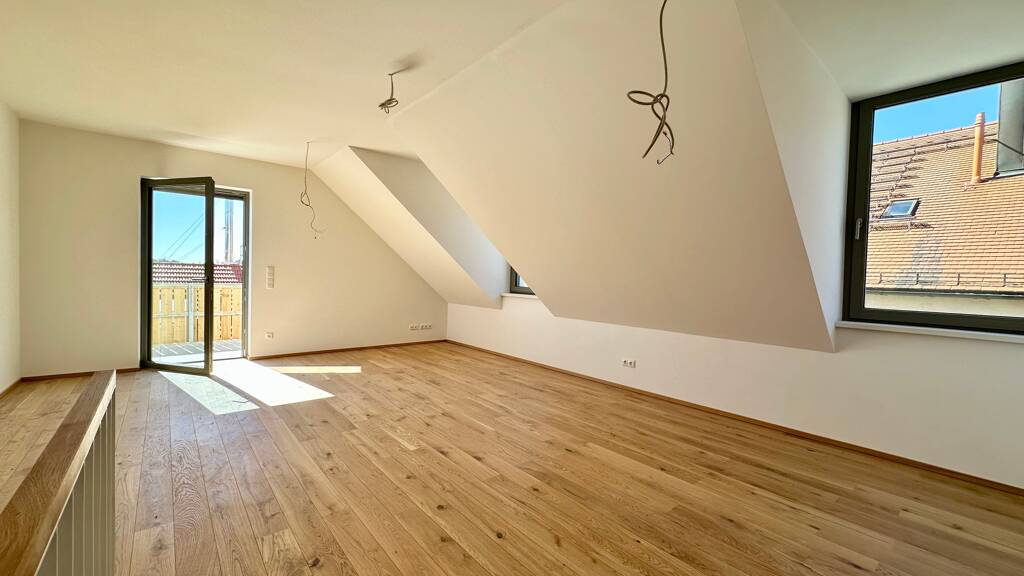 Raumaufteilung Die Wohnung verfügt über einen schön geschnittenen Eingangsbereich. Über eine Treppe gelangen Sie in den lichtdurchfluteten, offen gestalteten Wohn-Ess-Küchenbereich mit direktem Balkonzugang. Der Südbalkon mit Weitblick lädt zum gemütlichen Verweilen ein. Außerdem verfügt die Wohnung in der unteren Etage über ein Schlafzimmer sowie einen Abstellraum mit Waschmaschinenanschluss. Das Tageslichtbad mit Dusche und Fenster wird bereits mit Accessoires wie Spiegel und Handtuchhalter ausgestattet. Der Tiefgaragenstellplatz sowie das Kellerabteil rundet den Wohntraum ab!