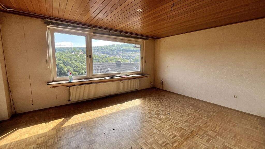 Die obere Wohnung steht leer, ist jedoch renovierungsbedürftig und bietet dadurch viel Spielraum für eigene Ideen. Sie eignet sich ideal zur Selbstnutzung oder zur Neuvermietung. Ein zusätzlicher Raum im Dachgeschoss gehört exklusiv zu dieser Einheit und kann flexibel als Büro, Gästezimmer oder Stauraum genutzt werden.