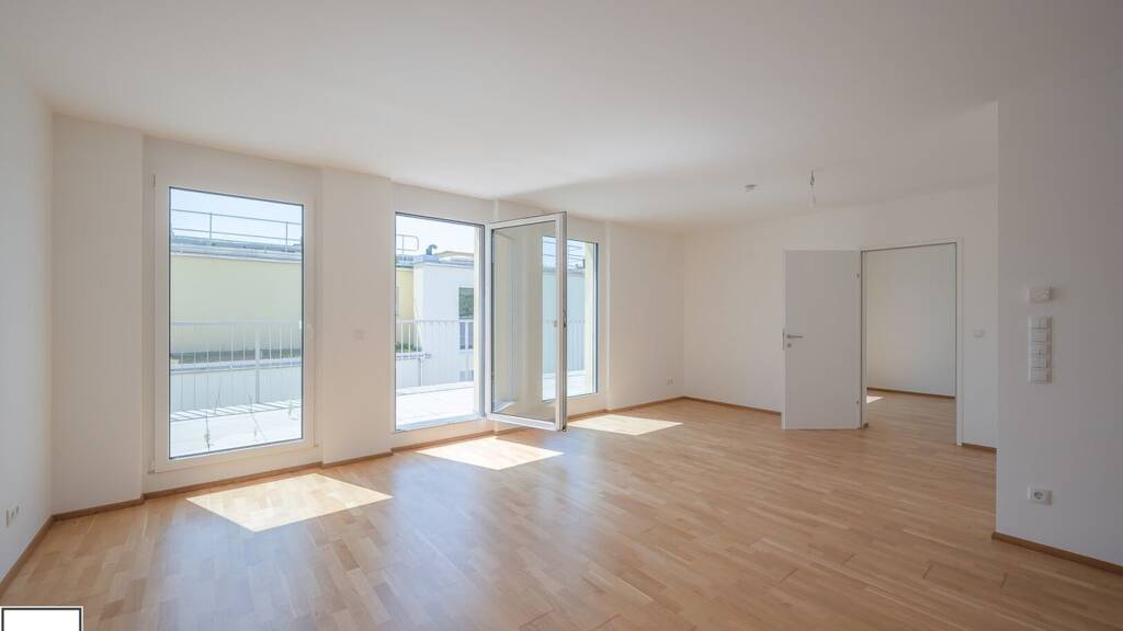 Die Wohnung Top 9 im Dachgeschoß (2. OG) von Haus 2 bietet auf 75,7 m² ein durchdachtes Raumprogramm mit Vorraum, drei Zimmern, Abstellraum, Badezimmer und separatem WC. Von allen Zimmern führt der Ausgang auf die rund 48 m² große Terrasse, die den Wohnraum um wertvolle Freifläche erweitert. Eichen-Echtholz-Parkett, großformatige Fliesen mit hochwertiger Keramik in den Nassräumen sowie eine Sicherheits-Eingangstüre runden das Gesamtpaket ab und sorgen für Wohnkomfort auf zeitgemäßem Niveau. Zusätzlich gehören ein Kellerabteil sowie optional verfügbare Garagenplätze in der Tiefgarage zum Angebot.