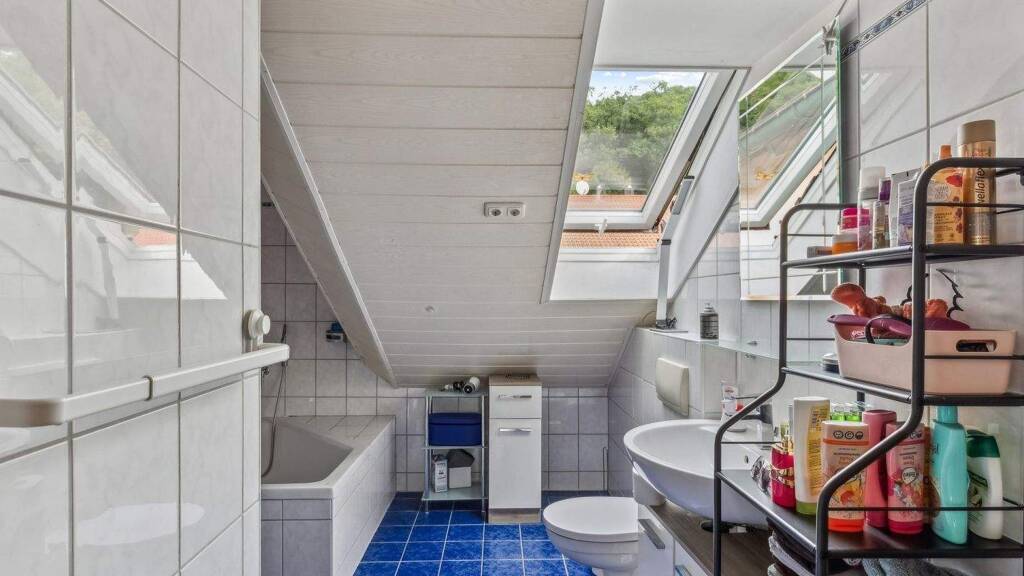 Die Wohnung besticht durch ihre helle und freundliche Atmosphäre, großzügige Dachflächenfenster sorgen für viel Tageslicht und schaffen eine angenehme Wohnqualität. Das große Wohnzimmer bietet Zugang zu einem kleinen Balkon mit Blick ins Grüne und lädt zum Entspannen ein. Drei weitere Zimmer stehen als Schlafzimmer, Kinderzimmer, Gäste- oder Arbeitszimmer zur Verfügung und lassen sich flexibel nutzen.