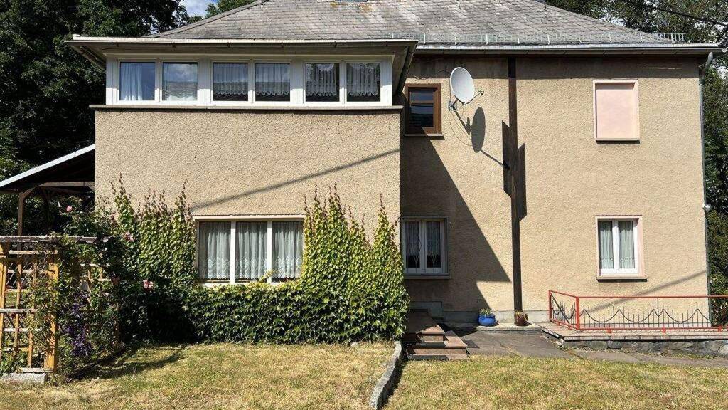 Im Wohnhaus sind zwei, nach Geschoß, getrennt liegende Wohnungen mit jeweils eigenem Eingang. Es wurde in den 70er Jahren erweitert sowie aus- und umgebaut. Der Grundstock mit dem Erdgeschoß des ursprünglichen Gebäudes ist sehr massiv gebaut mit teilweisen Mauerstärken von bis zu 1m. In beiden Bädern sind Kreuzgewölbe. Das Obergeschoss besteht weitgehend aus Fachwerk, dass im Zuge des Umbaus beplankt wurde. Das Dachgeschoß ist sehr geräumig aber kalt. Die Eindeckung besteht aus den DDR üblichen Asbestschindeln. Das Haus eignet sich beispielsweise als Mehrgenerationenhaus aber auch für einen Handwerksbetrieb der ausreichend Nebengelass benötigt. Zum Wohnhaus gehört ein frei stehendes großes Scheunengebäude. Die Gesamtfläche des bebauten Grundstücksteil beträgt 1.160qm. Unmittelbar dahinter liegt der Garten (1.070qm) mit überwiegend Wiese und einigen alten Obstbäumen sowie anderen Gehölzen. Von der Anliegerstraße aus hat das Grundstück eine eigene breite Zufahrt, die in den Hof zwischen Wohnhaus und Scheune mündet.