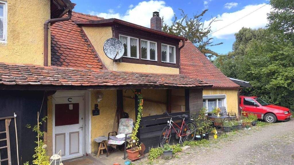 Das ältere Einfamilienhaus mit der Hausnummer 2 aus ca. 1908 befindet sich auf der linken Seite einer gemeinsamen Zufahrt mit dem Haus 2a. Hier erwarten Sie ein Haus mit 4 Zimmern und 120 qm Wohnfläche auf zwei Etagen und einem eigenen Garten in Hilpoltstein.
