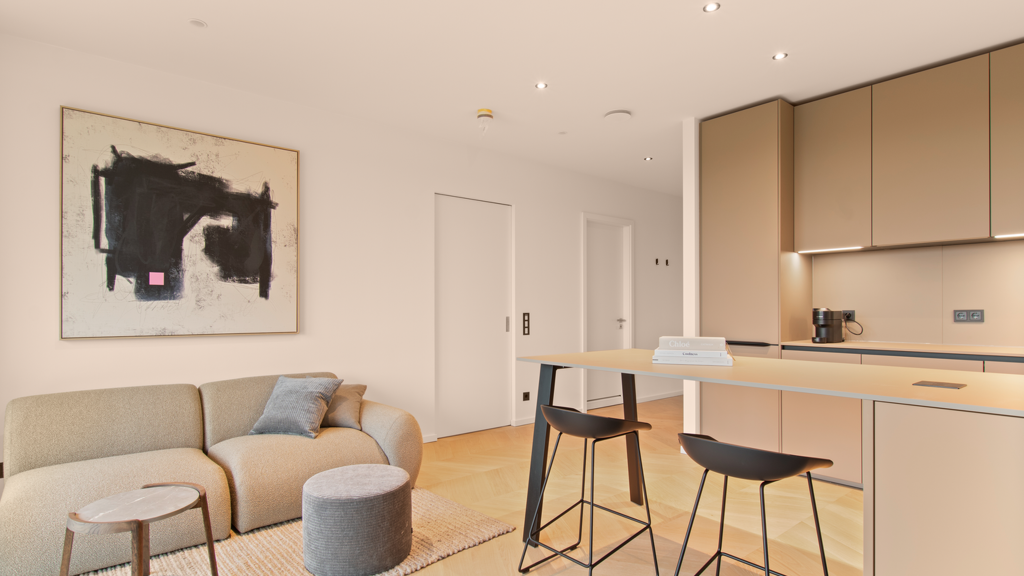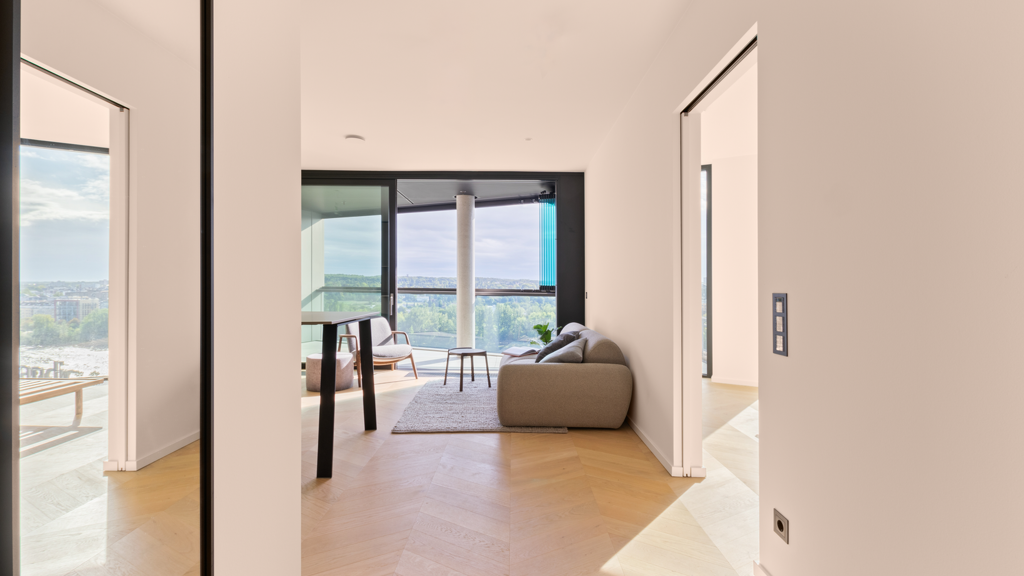 All das und mehr bietet diese 63 m² große voll möblierte Wohnung im Hafenpark Quartier. Die kürzlich fertiggestellten Wohnungen an Frankfurts neuer Top-Adresse sind ab sofort bezugsfertig und verbinden urbanen Lifestyle mit höchstem Wohnkomfort - inklusive Ausblicken, die es so in Frankfurt bisher nicht gab. Neben der hochwertigen Ausstattung überzeugt vor allem der Grundriss. Der großzügige Flur empfängt Sie als stilvoller Übergang zwischen Außenwelt und Ihrem privaten Refugium.