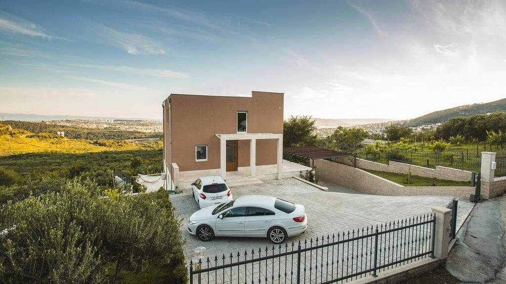In einer äußerst ruhigen und diskreten Lage oberhalb von Split befindet sich diese elegante Villa, die vollständige Privatsphäre und einen bezaubernden Panoramablick auf das Meer, die Stadt Split und die umliegenden Inseln bietet, während das Stadtzentrum von Split nur 15 Minuten Fahrt entfernt ist.