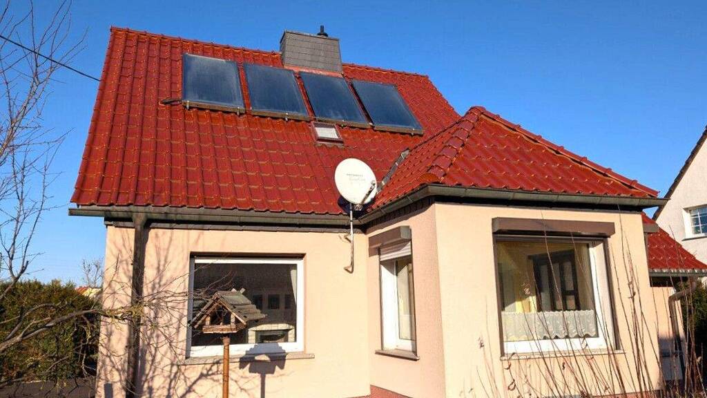 Technisch ist das Haus mit einer Solarthermieanlage auf dem Dach ausgestattet, welche die Heizung und Warmwasseraufbereitung unterstützt. Eine große Garage bietet ausreichend Platz für Fahrzeug, Werkstatt oder Hobby.