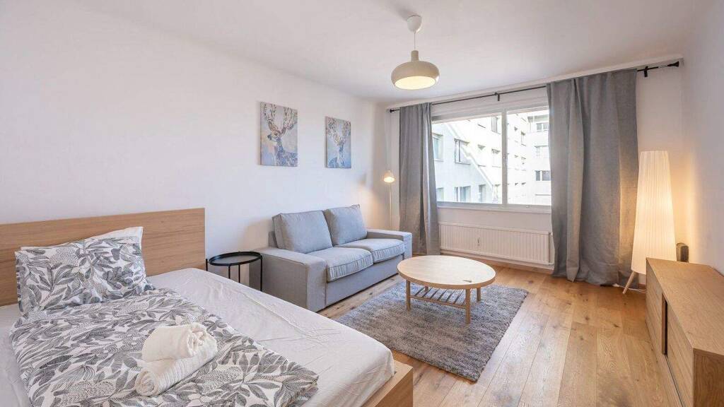 * total size ca. 36m² * newly renovated * community roof top terrace overlooking vienna. * 10 minutes with public transport to the first district * fully furnished * ready to move in * available from minimum 2 months up to maximum 6 months * bathroom with tub and toilet * monthly rent 1.150,00.- (including electricity and heating) * no commission * 2000 euros deposit * No main residence registration possible