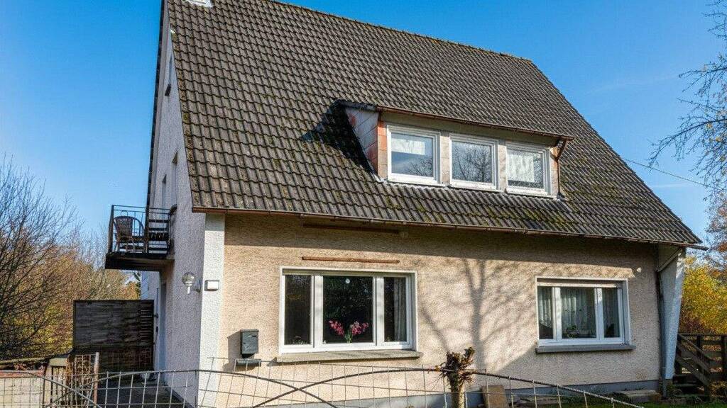 Die Immobilie wurde ca. 1962 in Massivbauweise auf einem ca. 2.402 m² großen Grundstück errichtet und bietet vielseitige Nutzungsmöglichkeiten. Das Zweifamilienhaus verfügt über eine gut durchdachte Raumaufteilung mit einer Wohnfläche von ca. 172 m², verteilt auf das Erd- und Dachgeschoss mit insgesamt sechs Zimmern. Im Erdgeschoss befinden sich ein Bad, ein großzügiges Wohnzimmer, ein Esszimmer mit Zugang zur Terrasse sowie zum Garten, eine Küche und ein weiterer großzügiger Raum. Das Obergeschoss umfasst drei Zimmer, einen Balkon, eine Küche sowie ein Badezimmer. Das Kellergeschoss bietet Ihnen zusätzlich vier Kellerräume sowie einen direkten Zugang zum Garten. Der pflegeleichte Garten lädt zum Entspannen und Verweilen ein. Ebenfalls steht Ihnen eine große Garage zu Verfügung. Das Objekt befindet sich in einem renovierungsbedürftigen Zustand, bietet jedoch erhebliches Potenzial zur individuellen Gestaltung und Wertsteigerung.